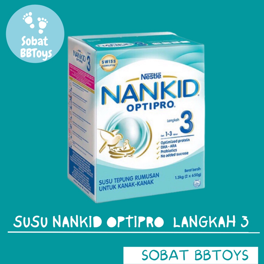 NEW NANKID OPTIPRO contains Hundred million. LEFT ONLY 1 box of 2x650g Expiring by end May 2020 Product highlight. NAN OPTIPRO THREE 13 kg is a growing-up milk designed for toddlers from 1-3 years of age.